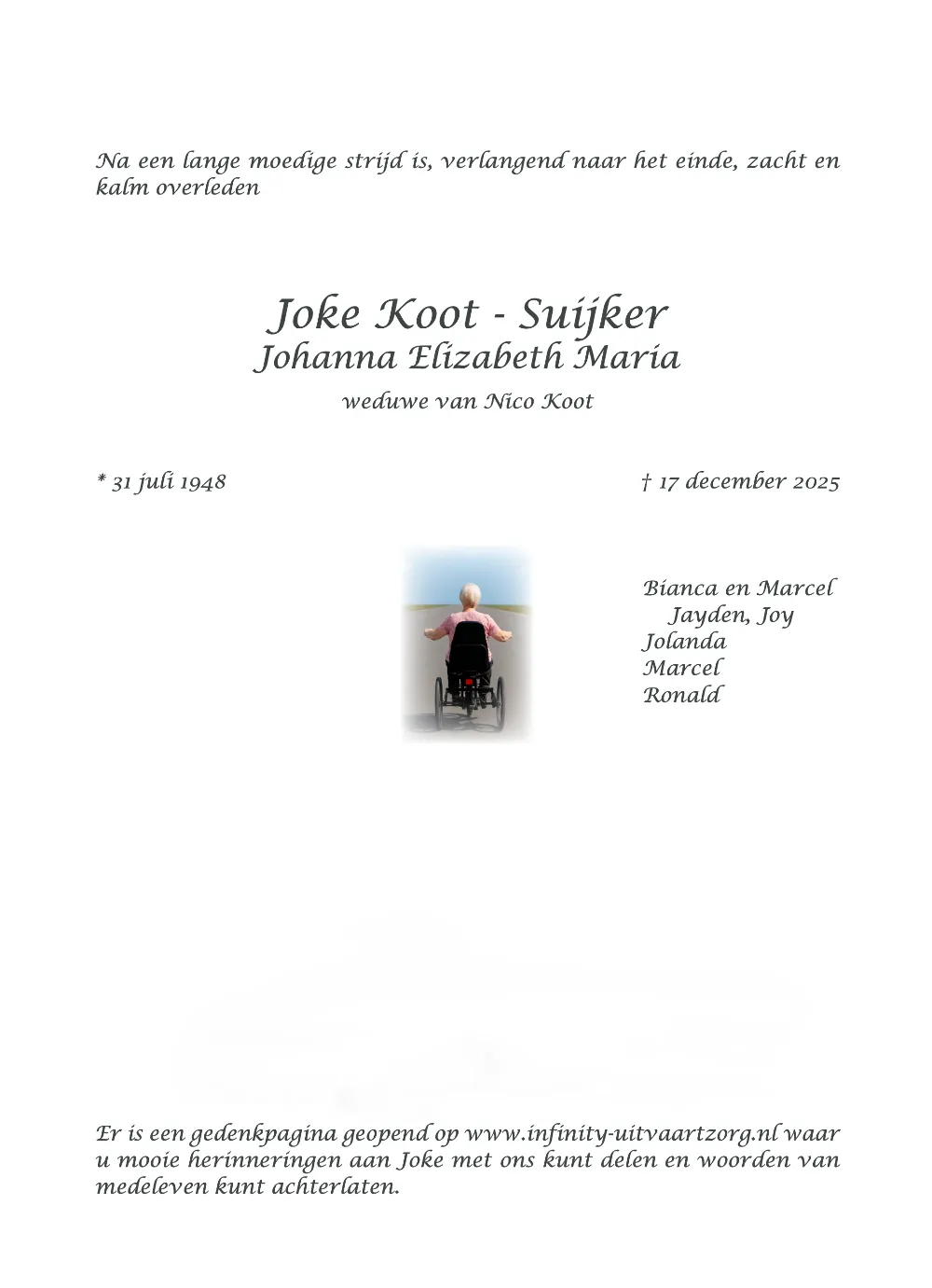 31 juli 1948 - 17 december 2025Infinity Uitvaartzorg