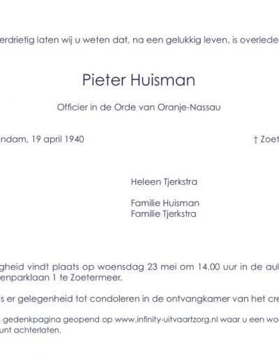 In Memoriam Pieter Huisman